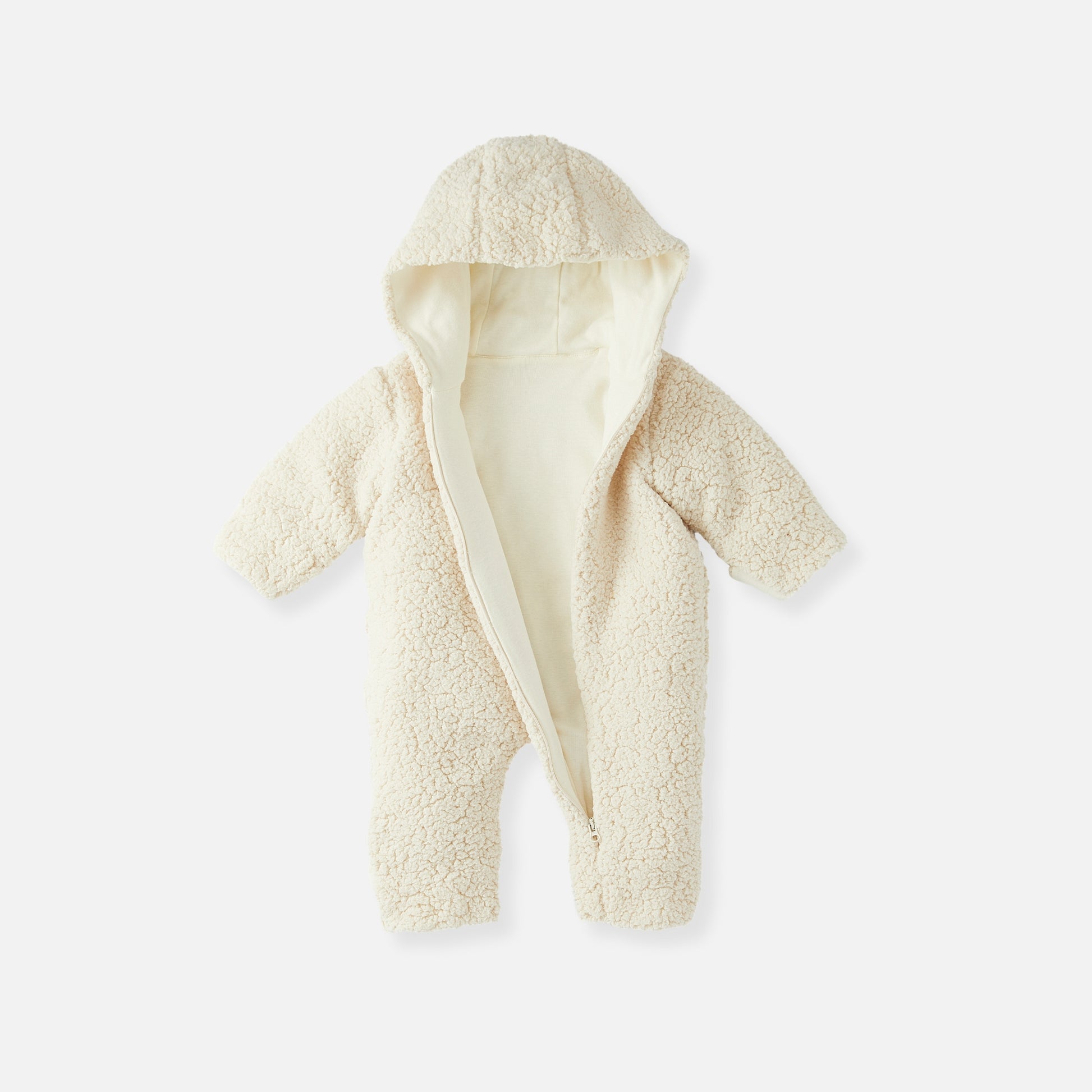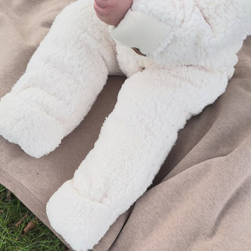 Cette combinaison Teddy est fabriquée en Teddy de polyester recyclé et doublée de coton biologique ultra-doux – un choix à la fois écologique et confortable, parfait pour la peau sensible de votre enfant. Pour plus de praticité, les manches et les jambes sont dotées de revers rabattables qui permettent de couvrir mains et pieds pour un supplément de chaleur.